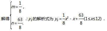 解:(1)由题意可得,函数y2的图象经过两点(3,6),(7,7)