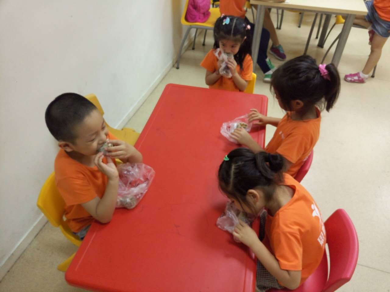 拼图耗了好多力气,赶紧吃点点心补充体力
