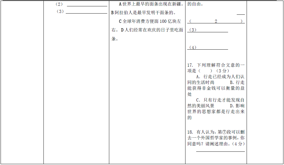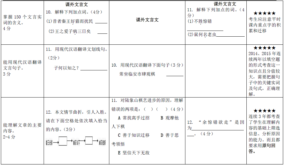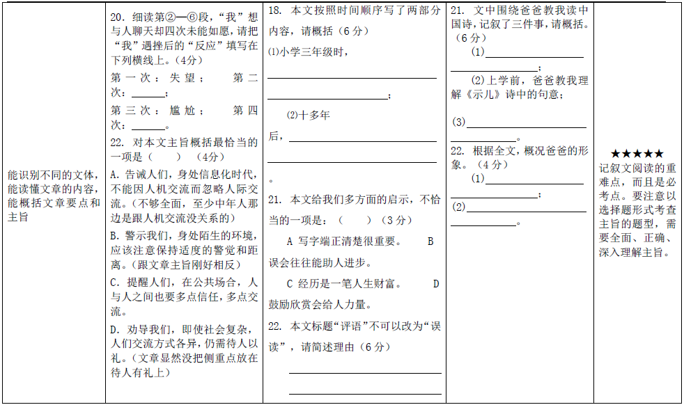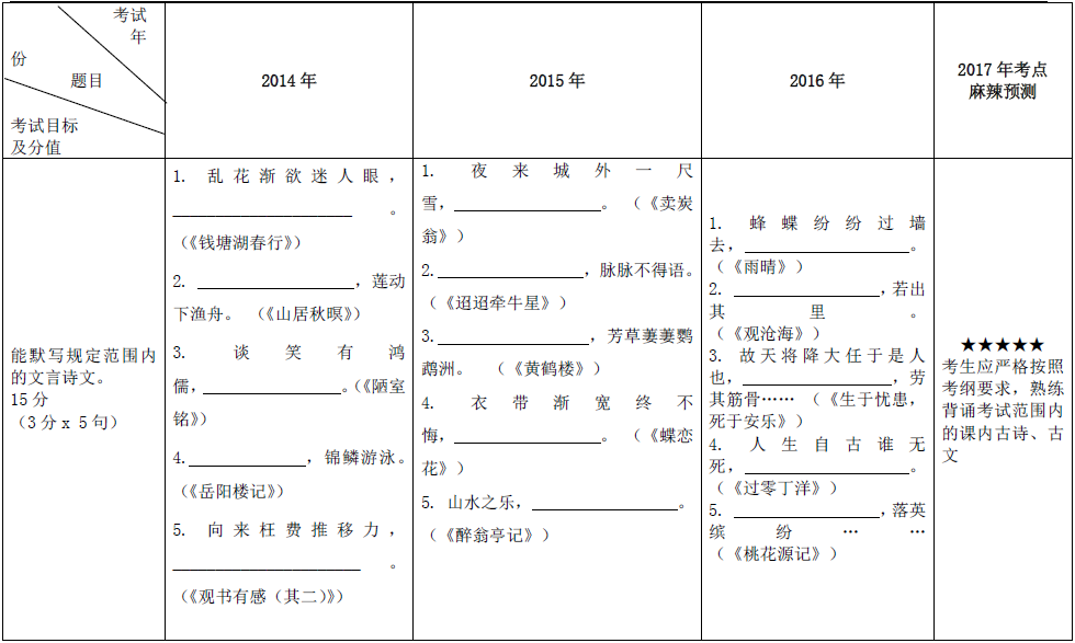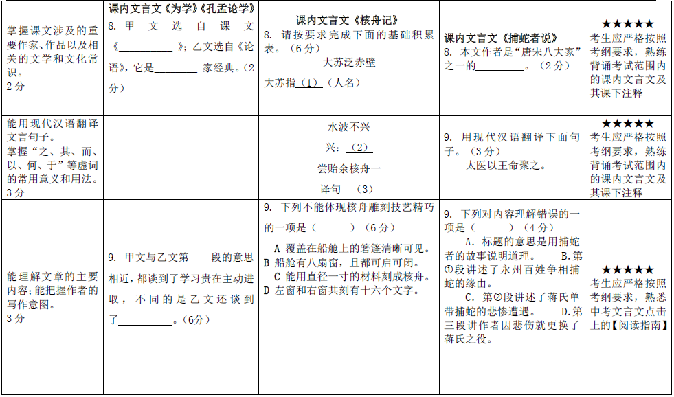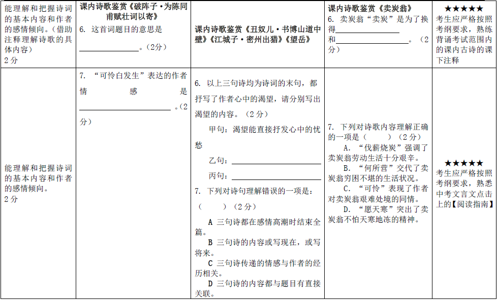 2、由于教材及考试的变化,因此本表只对近3年的上海语文中考真题进行横向比较。