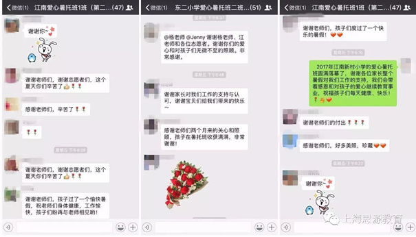 思源教育感恩在2017爱心暑托班活动中,给予支持与参与的社会各公益团体及街道工作人员,感恩思源教师及志愿者们的认真负责、耐心照看每一位小朋友的积极服务态度。思源教育也将把服务社会公益项目的热枕感染回平日的教学工作,继续坚持教学质量第一的办学原则,服务好每一位来到思源教育的学生及学生家长。