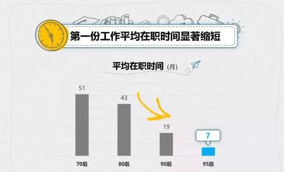 近日,一份关于95后工作状况的报告引起了社会各界的关注。数据显示,职场人第一份工作的平均在职时间呈现出随代际显著递减的趋势。70后的第一份工作平均超过4年才换,80后则是3年半,而90后骤减到19个月,95后更是仅仅在职7个月就选择了辞职。超过7成的95后毕业生第一份工作与所学专业无关。