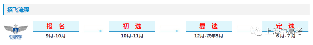 高考结束后,考生按通知分批次到北京海军招飞检测中心参加定选复查,合格的按高考成绩和检测结果投档录取。本省上线生源不足、完不成计划的,跨省调剂录取。