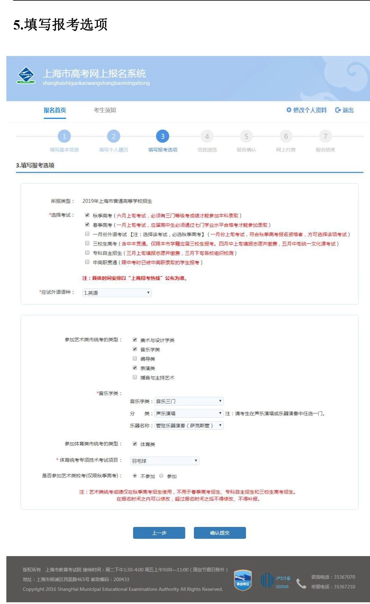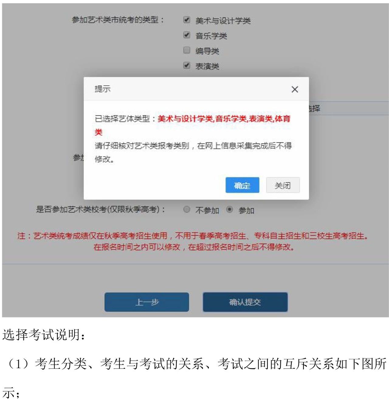 “选择考试”的选项里,“春季高考”、“秋季高考”、“一月份外语考试”,建议大家全部勾选。选项中“专科自主招生”指的是三月份高职高专自主招生考试,有可能会参加此选项考试的同学,务必勾??!