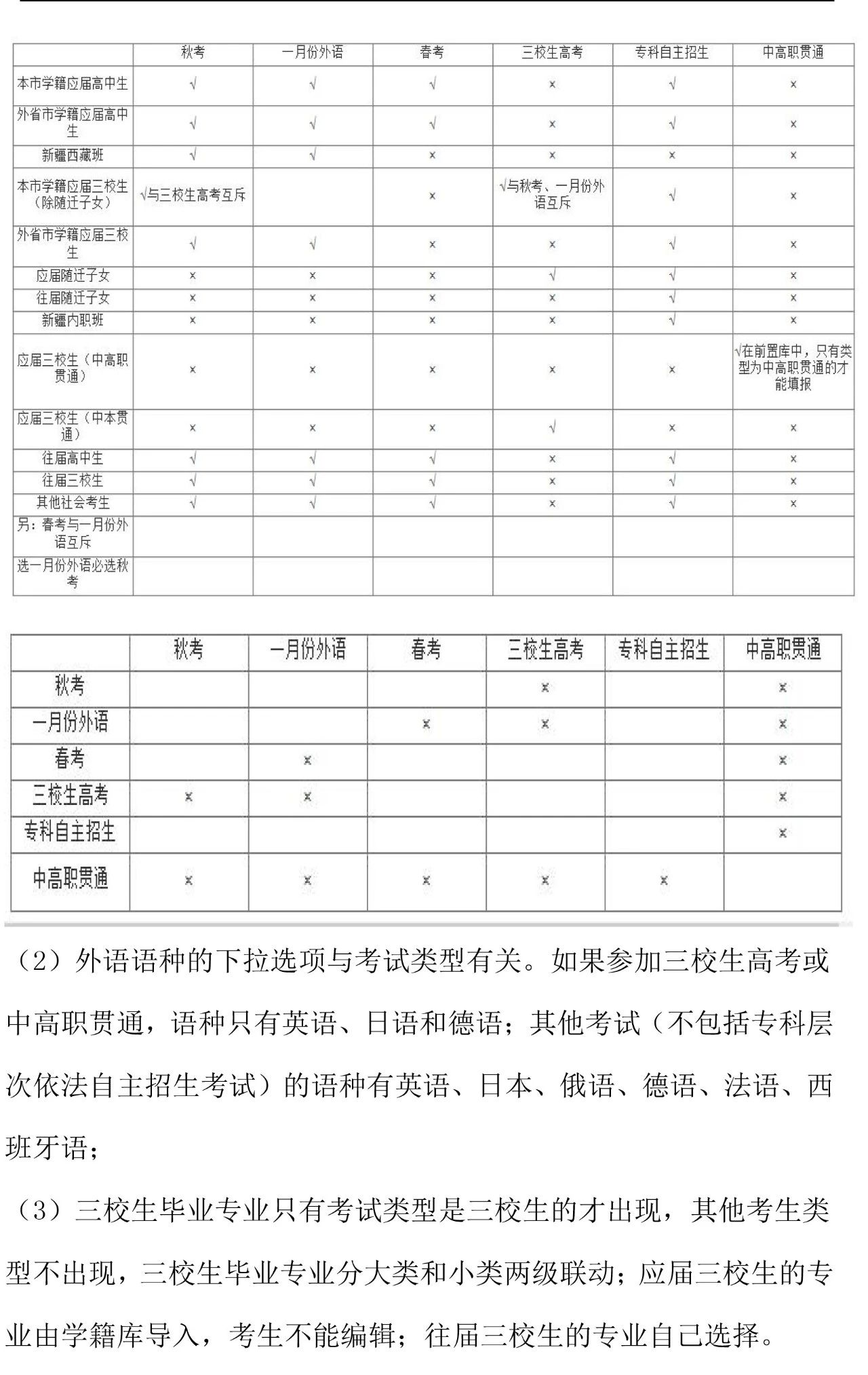 三校生高考(含中本贯通,仅限本市学籍应届三校生报考。四月中上旬填报志愿并缴费,五月中旬统一文化课考试)