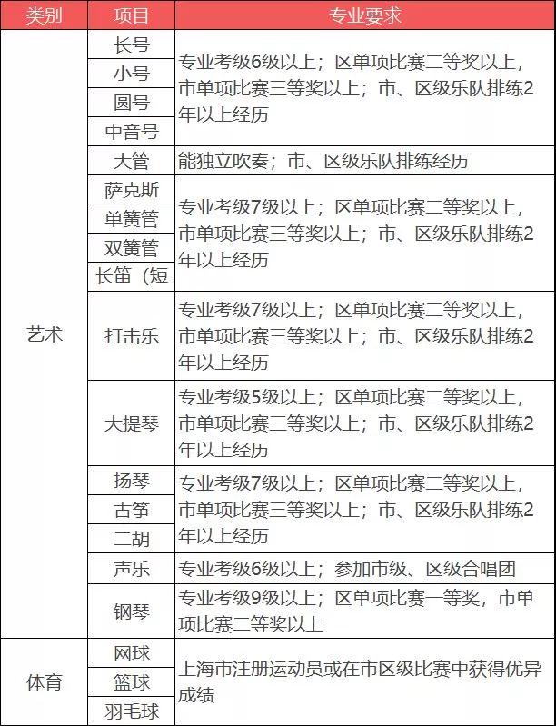 注:艺术、体育特长学生入学需在面谈时提供相关证明材料并通过专项面试(详见面谈方式)。