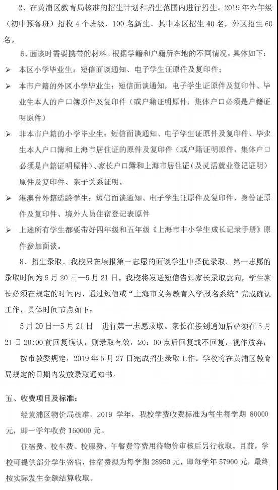 (2)报名方式为网上报名,5月6-8日民办初中报名,报名网站为“上海市义务教育入学报名系统”(shrxbm.shmec.gov.cn);第一或第二志愿填报本校的学生,报名后可获取本校面谈通知,作为参加面谈和录取的依据。