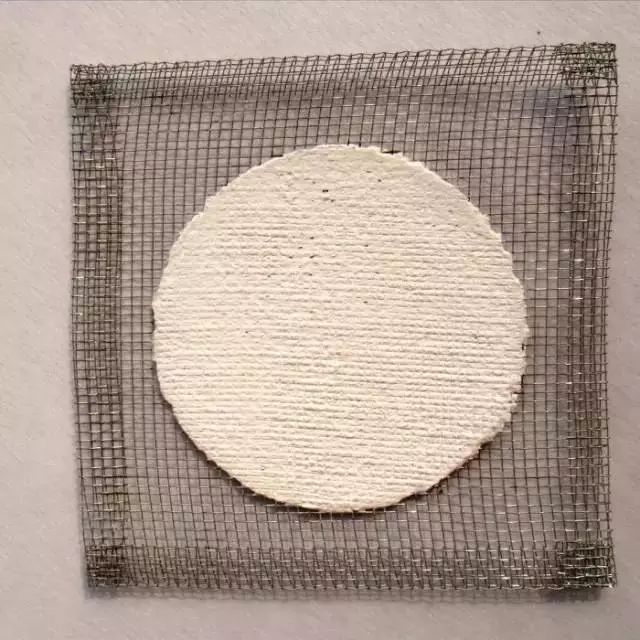 是一个四寸见方的铁丝网(起骨架支撑作用),当中涂以直径为二寸半的圆形石棉心。石棉具有耐高温、热的不良导体的特点,所以石棉网可以直接受热,常用于烧杯等受热时垫隔在火焰与玻璃容器之间,以使玻璃容器均匀受热;也常用于承接炽热的固体生成物,或将灼热的蒸发皿等放在石棉网上冷却。