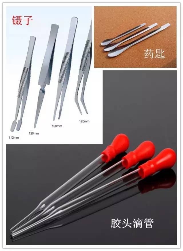 镊子一般用于取用不太大的块状固体药品。每次使用前后,都要用洁净的滤纸将它们擦拭干净,防止污染试剂,也防止被锈蚀。放置时,要使夹持物体或药品的尖部朝上,以免下次使用时污染试剂。