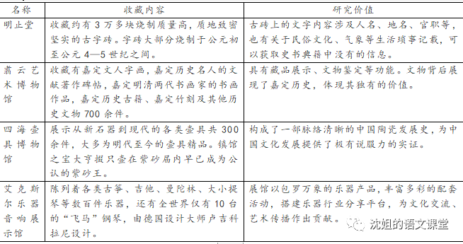 嘉定部分民间博物馆和艺术馆的收藏内容及研究价值情况如下: