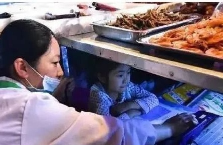 ③又因为小孩子的学习需要监督,所以女孩父母只能带着女孩一起到市场学习网课。