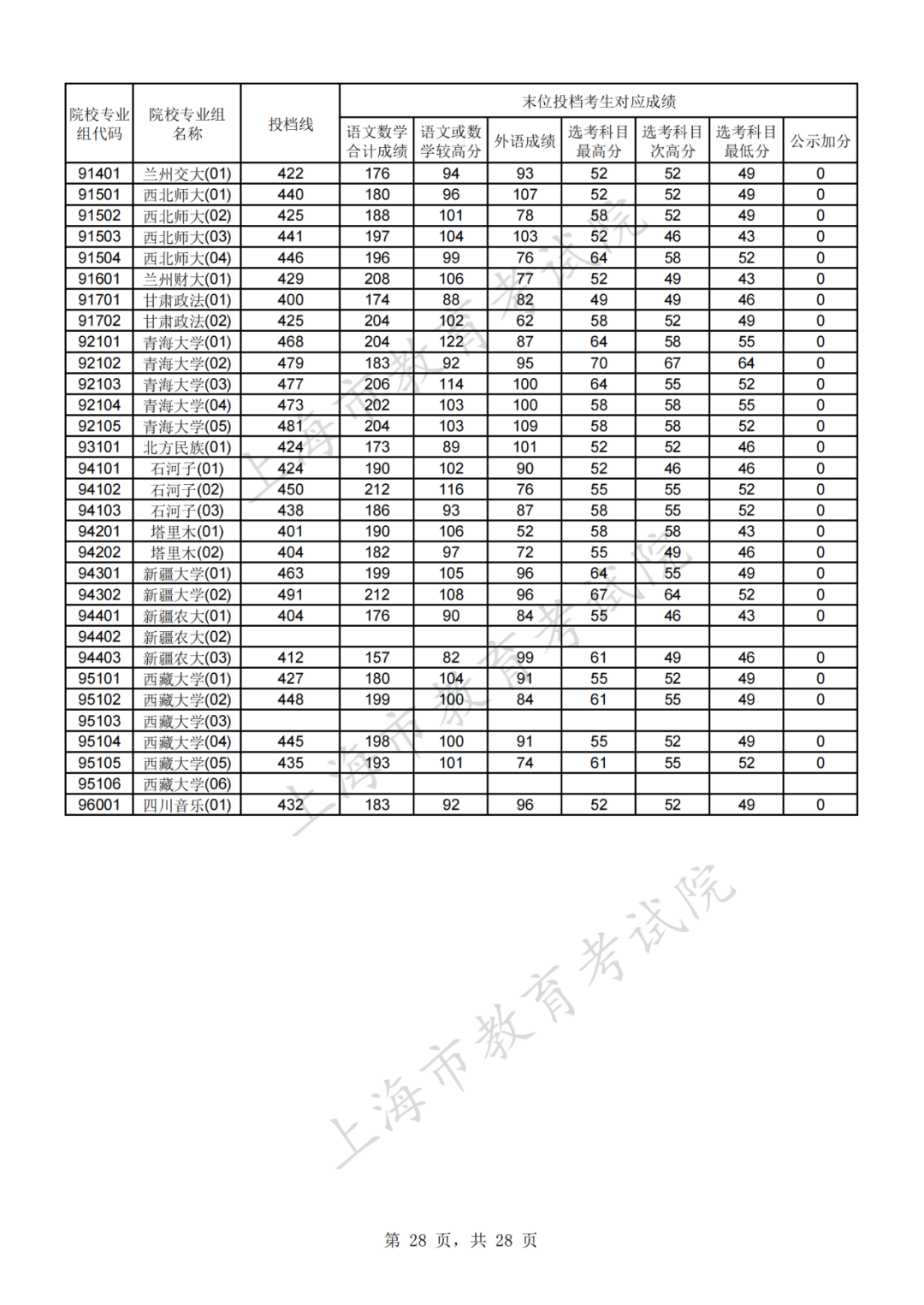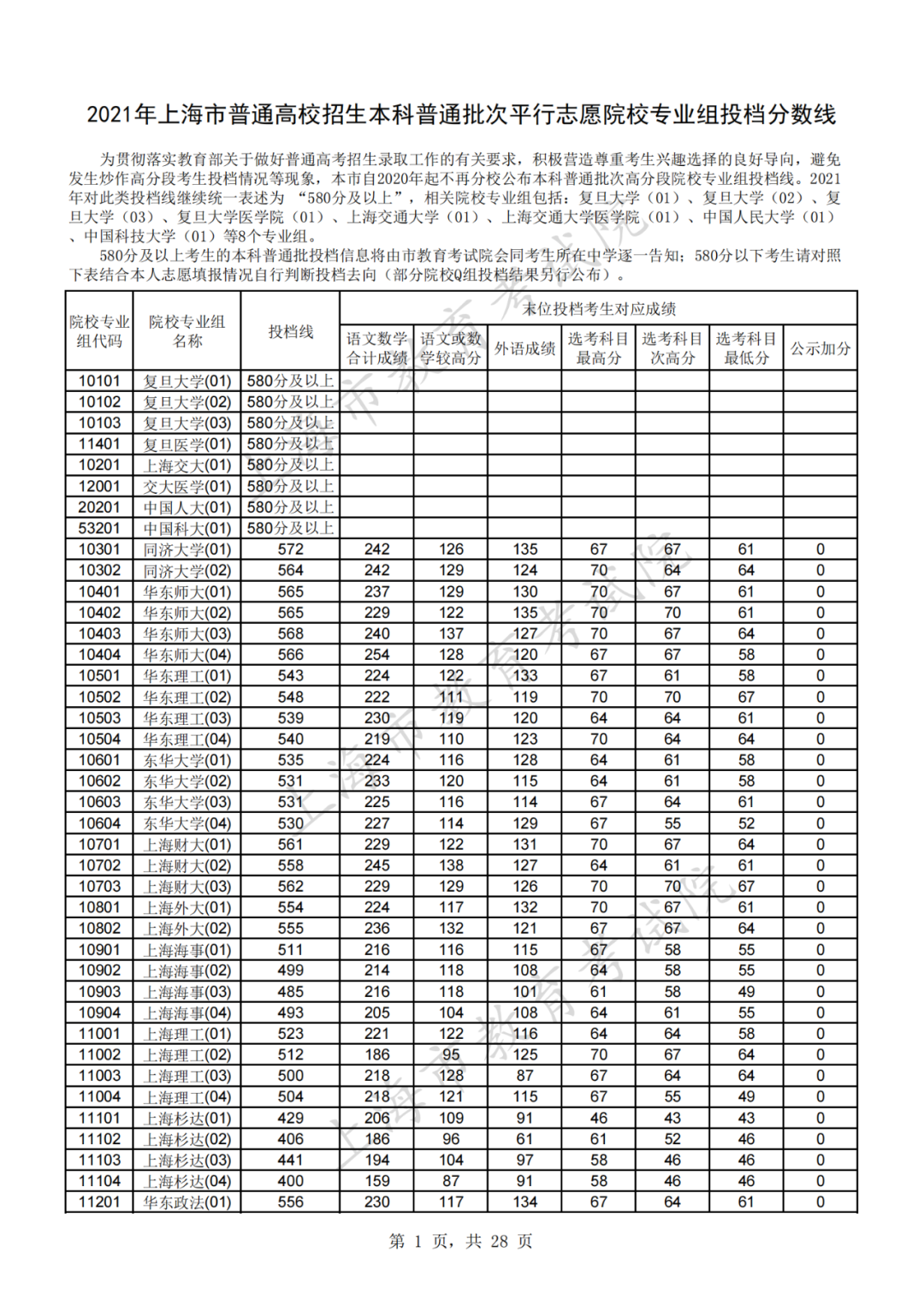 @高三考生们,2021年上海市普通高校招生本科普通批次平行志愿院校专业组投档分数线公布!