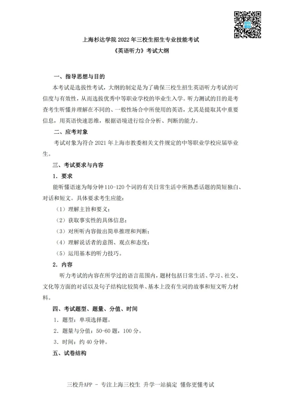 杉达22年技能测试考纲