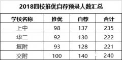 本文数据由热心家长整理,非官方权威发布,仅供参考。 今年,官方发布的四校推优自荐预录取总人数如下: 下面,我们根据家长提供的数据来看看四校今年推优自荐预录的初中生源分布情况: 上海中学 华师大二附中 复旦附中 交大附中...